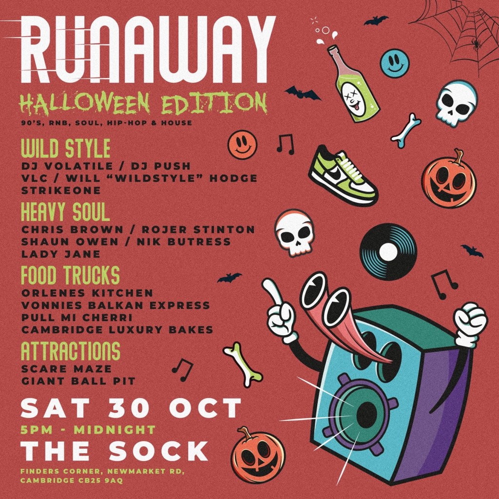 SAT 30th – RUNAWAY HALLOWEEN EDITION at THE SOCK CAMBRIDGE (5pm Start)