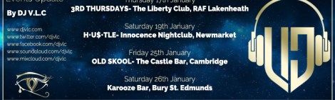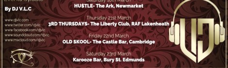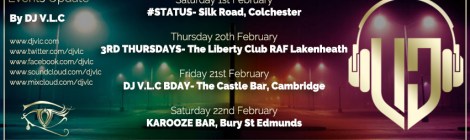 February 2020 – Saturday 1st- #STATUS- Silk Road, Colchester. – Thursday 20th- 3RD THURSDAYS- The Liberty Club, RAF Lakenheath. – Friday 21st- DJ V.L.C’s BDAY- The Castle Bar, Cambridge. – Saturday 22nd- KAROOZE BAR- Bury St Edmunds. […]