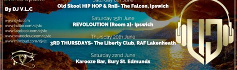 June 2019 – Saturday 8th- Old Skool HIP HOP & RnB- The Falcon, Ipswich. – Saturday 15th- REVOLOUTION [Room 2]- Ipswich. – Thursday 20th- 3RD THURSDAY’S- The Liberty Club, RAF Lakenheath. – Saturday 22nd- KAROOZE […]