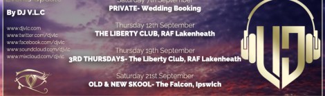 September 2019 – Saturday 7th- PRIVATE- Wedding Booking. – Thursday 12th- The Liberty Club- RAF Lakenheath. – Thursday 19th- 3RD THURSDAY’S- The Liberty Club, RAF Lakenheath. – Saturday 21st- OLD & NEW SKOOL- The Falcon, […]