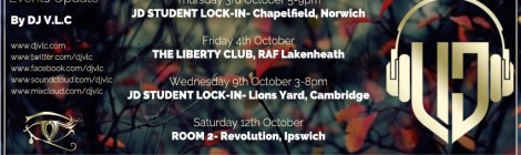October 2019 – Thursday 3rd- JD STUDENT LOCK-IN– JD Sports, Chaplefield, Norwich. – Friday 4th- THE LIBERTY CLUB- RAF Lakenheath. – Wednesday 9th- JD STUDENT LOCK-IN- JD Sports, Lions Yard, Cambridge. – Saturday 12th- ROOM […]