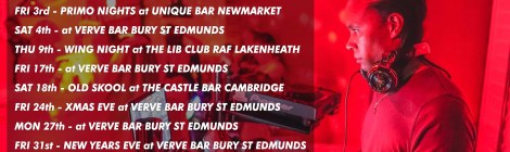 FRI 5th – PRIMO at UNIQUE BAR NEWMARKETSAT 6th – at VERVE BAR BURY ST EDMUNDSFRI 12th – at VERVE BAR BURY ST EDMUNDSSAT 13th – OLD SKOOL at THE […]