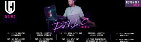 In November 2024, DJ V.L.C will be playing Hip Hop, RnB, Dancehall, and Afrobeats at locations including The Gallery Newmarket, Aurora in Ipswich, and a Thanksgiving celebration at Ice Nightclub in Thetford. The best events scheduled throughout the month.