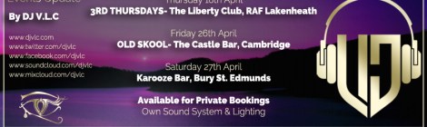 April 2019 – Thursday 18th- 3RD THURSDAY’S- The Liberty Club, RAF Lakenheath. – Friday 26th- OLD SKOOL- The Castle Bar, Cambridge. – Saturday 27th- KAROOZE BAR- Bury St. Edmunds. – – Initial Reaction Live […]